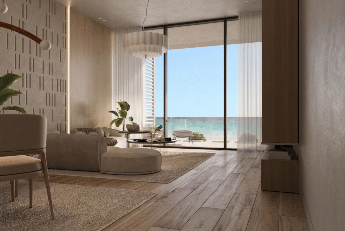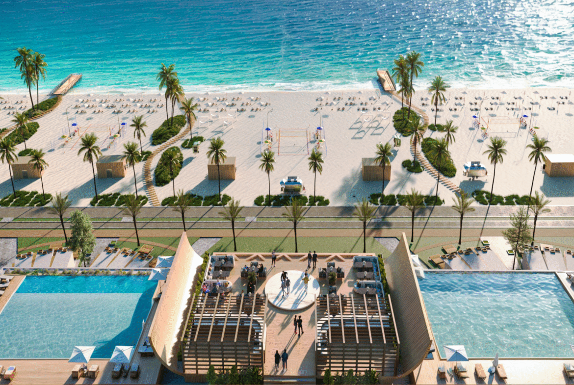 It lies directly on the beachfront, behind Emirates Gas Station, offering residents breathtaking sea views and seamless access to nearby landmarks: