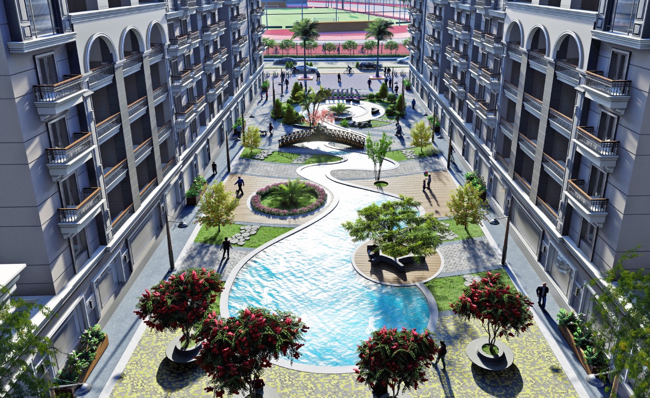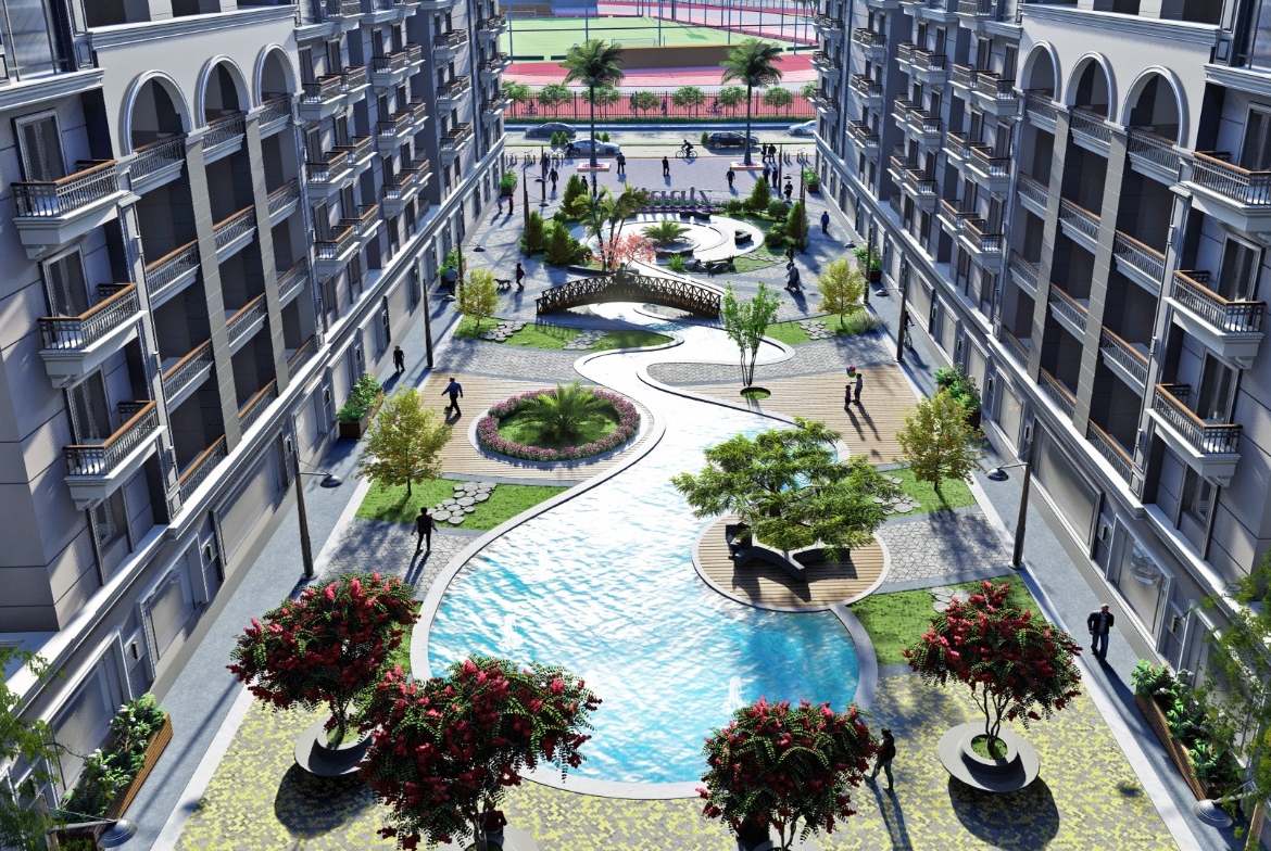 - مساحات خضراء واسعة وتصميمات لاندسكيب راقية